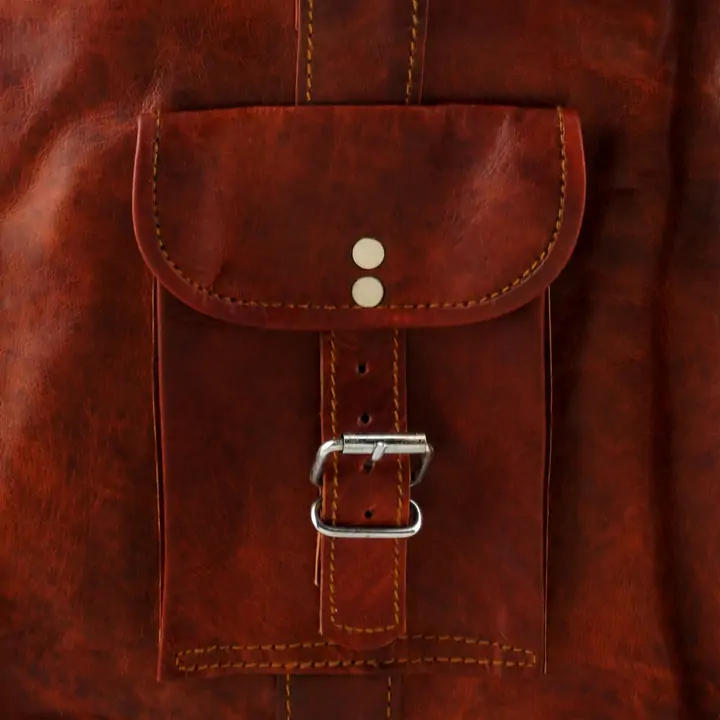 3 pockets outside, 1 zip pocket inside , straps of 1.5 inch with zip closure.