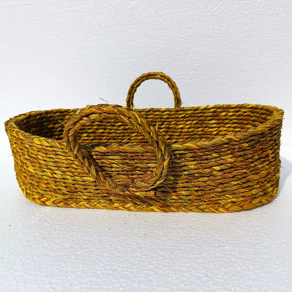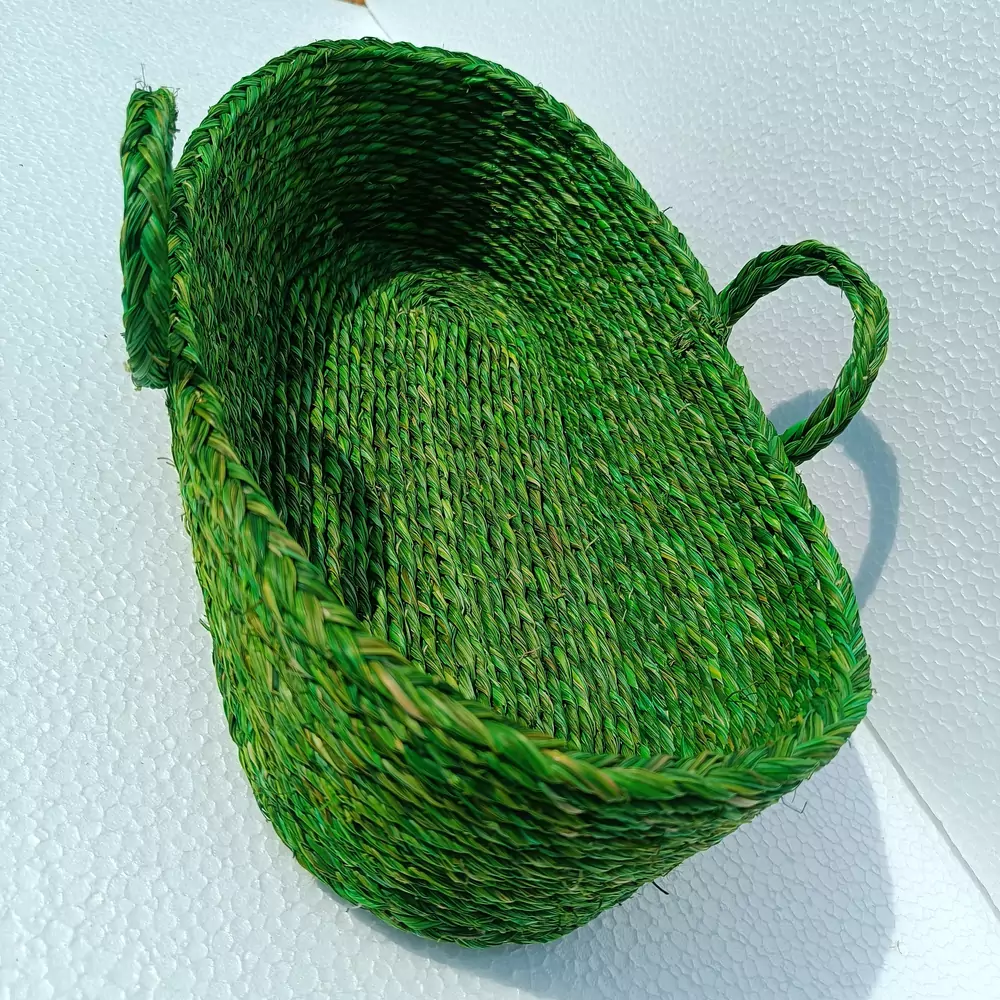 Sabai Grass Bread Basket: Elevate your dining experience with our exquisite Sabai Grass Bread Basket. Skillfully woven from sustainable sabai grass, this basket effortlessly combines functionality and aesthetics. Infuse your home with natural charm and a stunning pop of color! Introducing our Vibrant Green Sabai Grass Basket, meticulously handcrafted by skilled artisans. This eco-friendly basket, featuring convenient handles and a beautiful braided rim, is the perfect blend of sustainable style and practical storage. Organize your essentials beautifully while adding an eye-catching, natural touch to any room. Its natural texture and earthy tones add a rustic touch to your table setting while keeping your bread, rolls, or pastries fresh and organized. The spacious design accommodates various loaf sizes, making it perfect for everyday use or special occasions. Crafted with love for both the environment and your dining pleasure, the Sabai Grass Bread Basket is a must-have accessory for any kitchen or dining space.